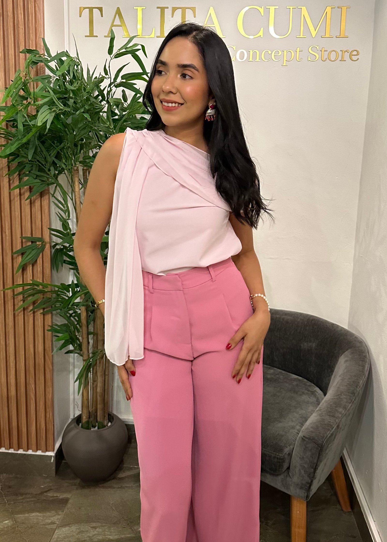 BLUSA DRAPEADA CON LAZO PINKY TALLA L