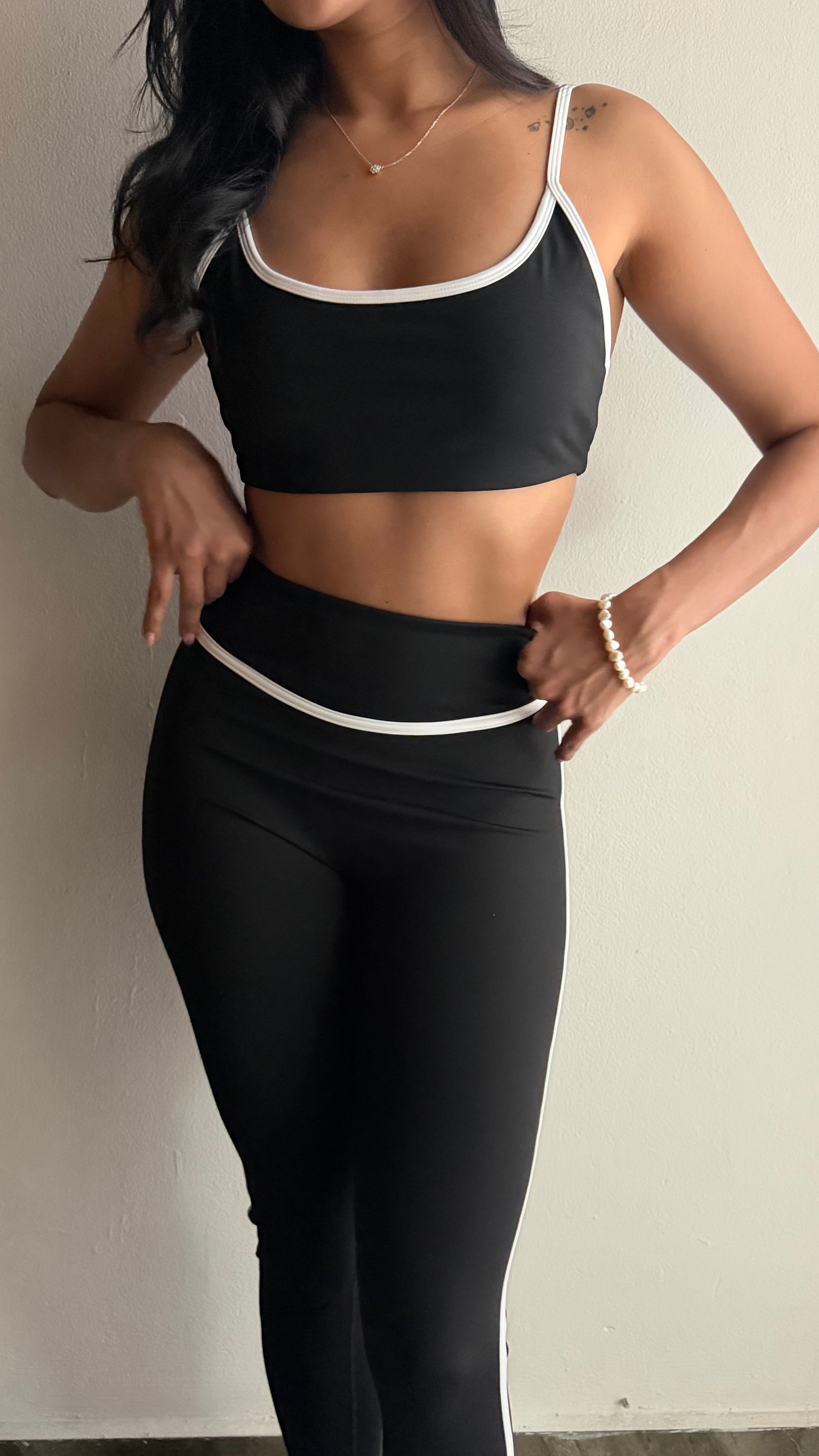 SET LEGGINGS Y TOP NEGRO CON LINEAS