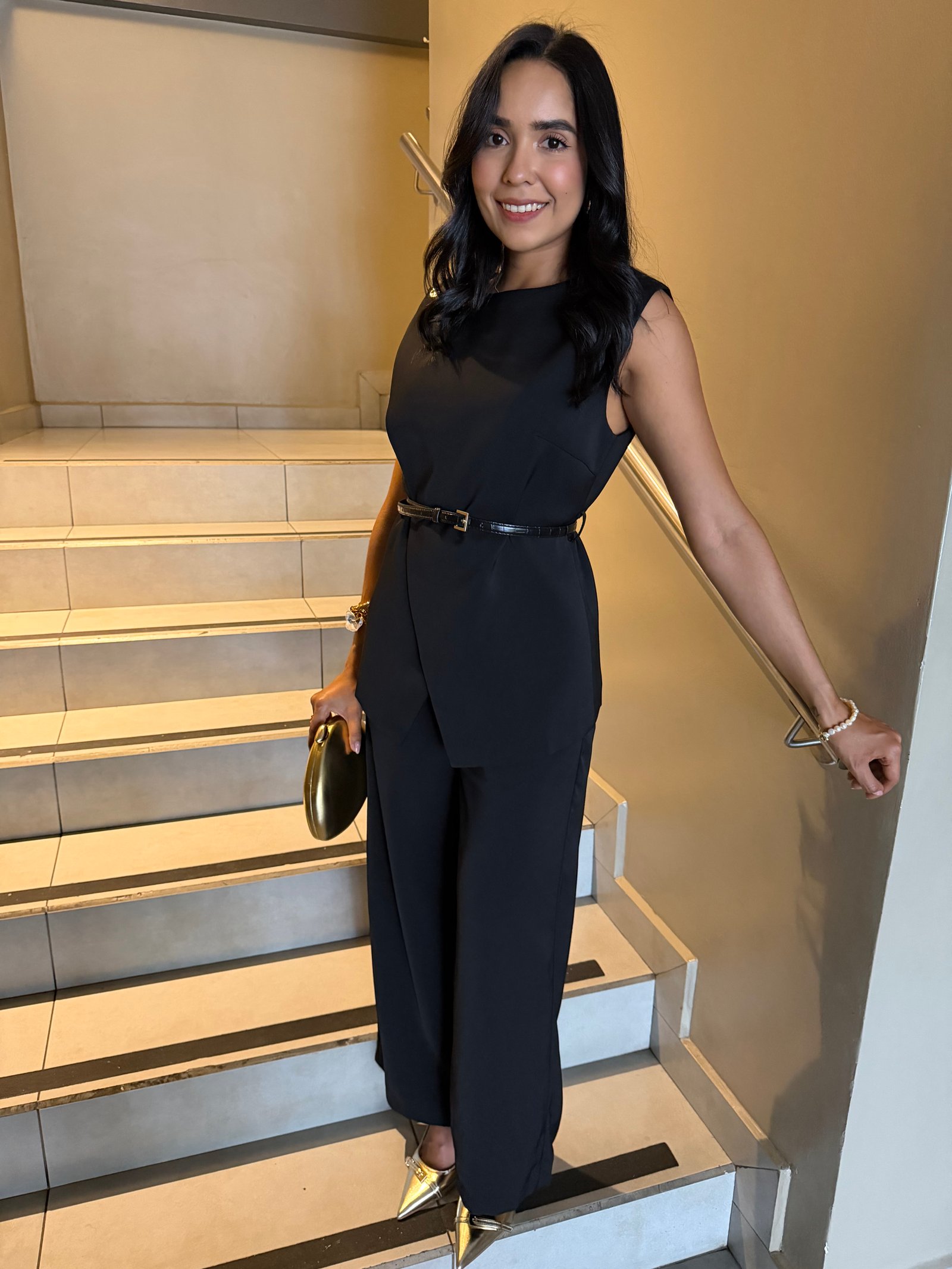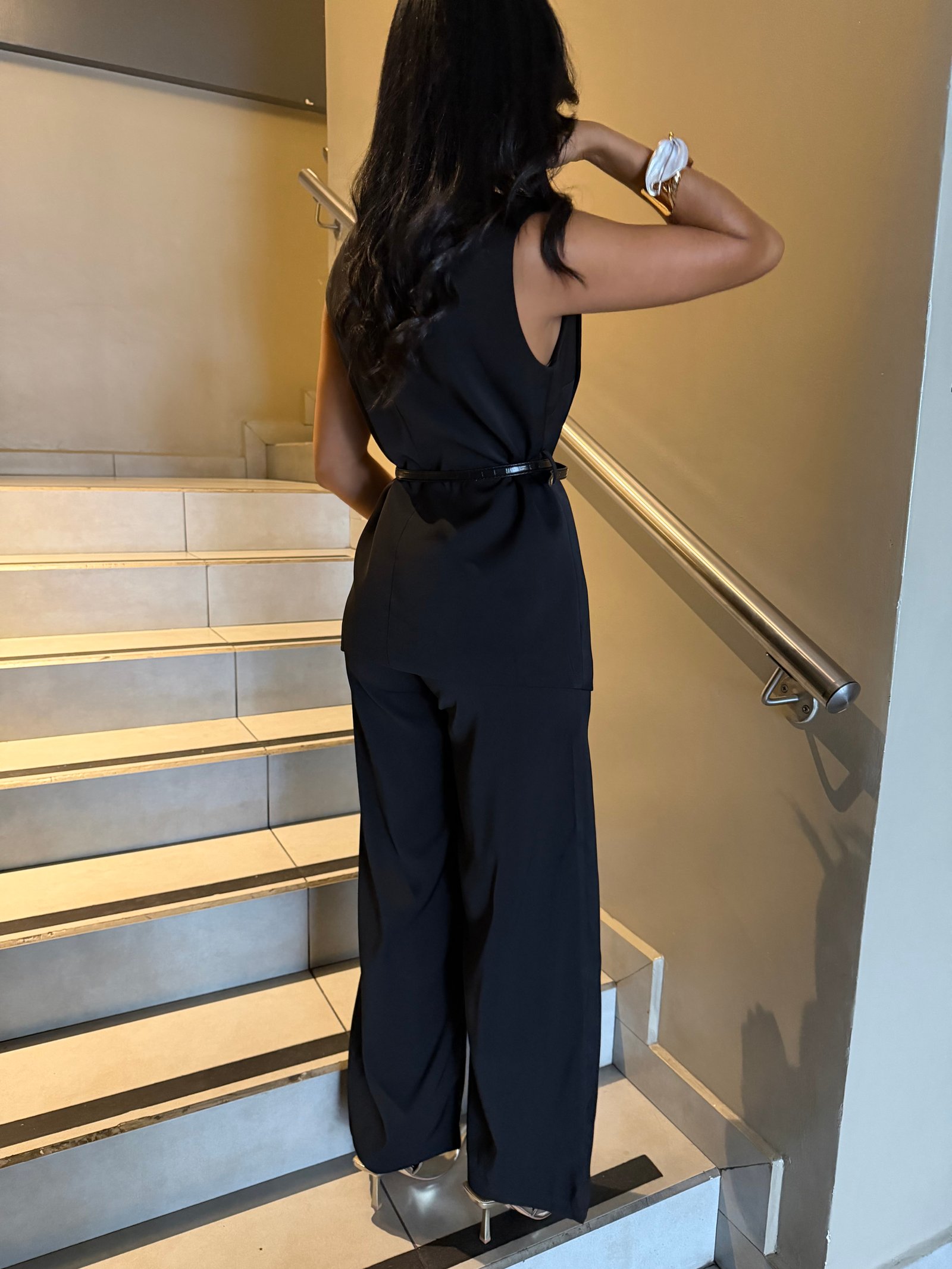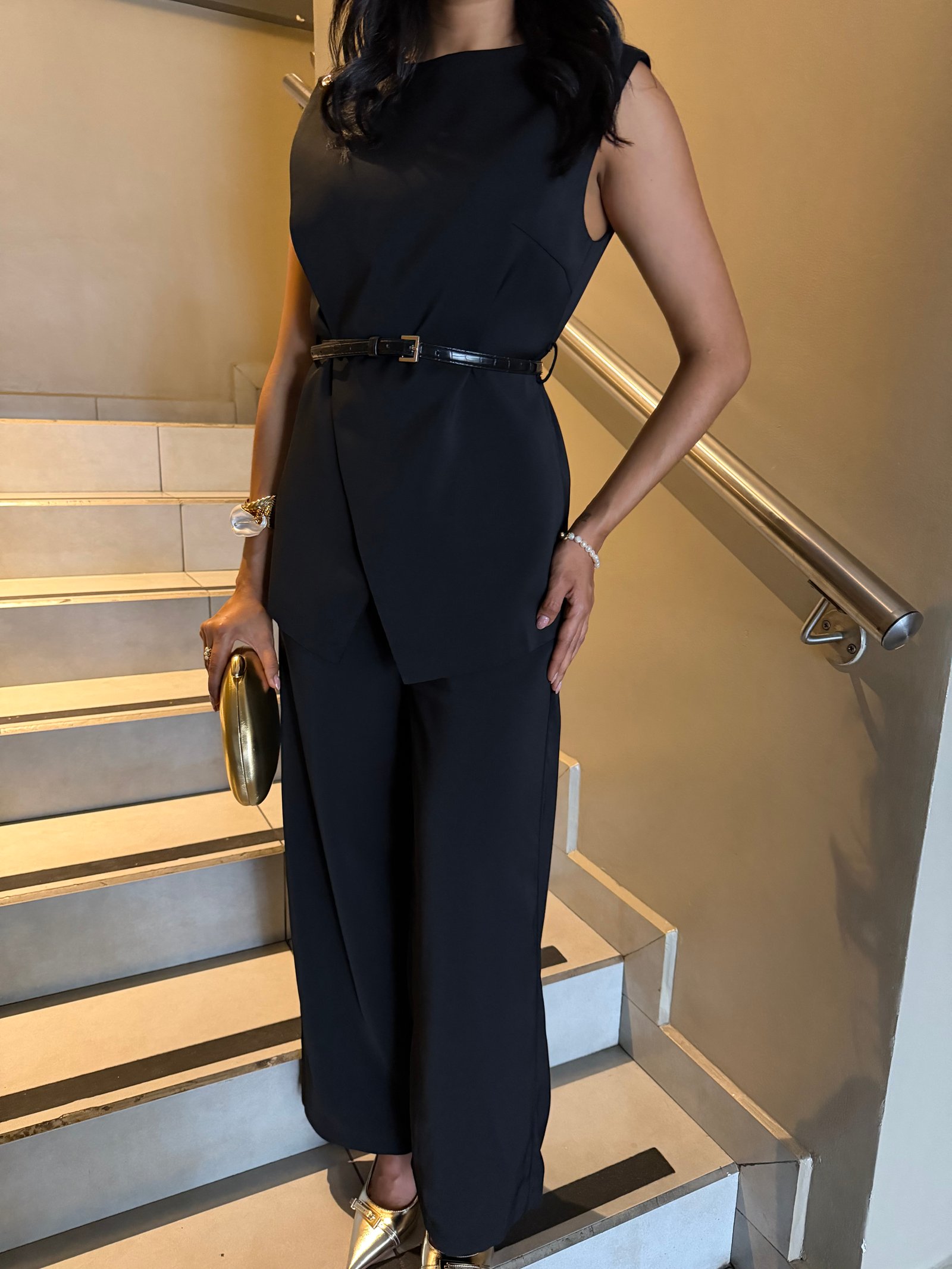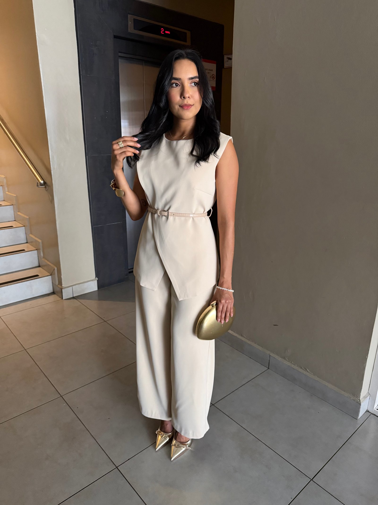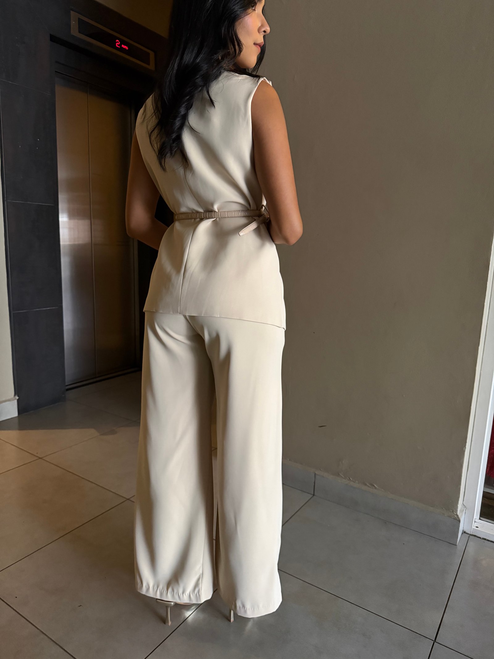 TRAJE BLUSA CON CINTURON Y PANTALON RECTO VB