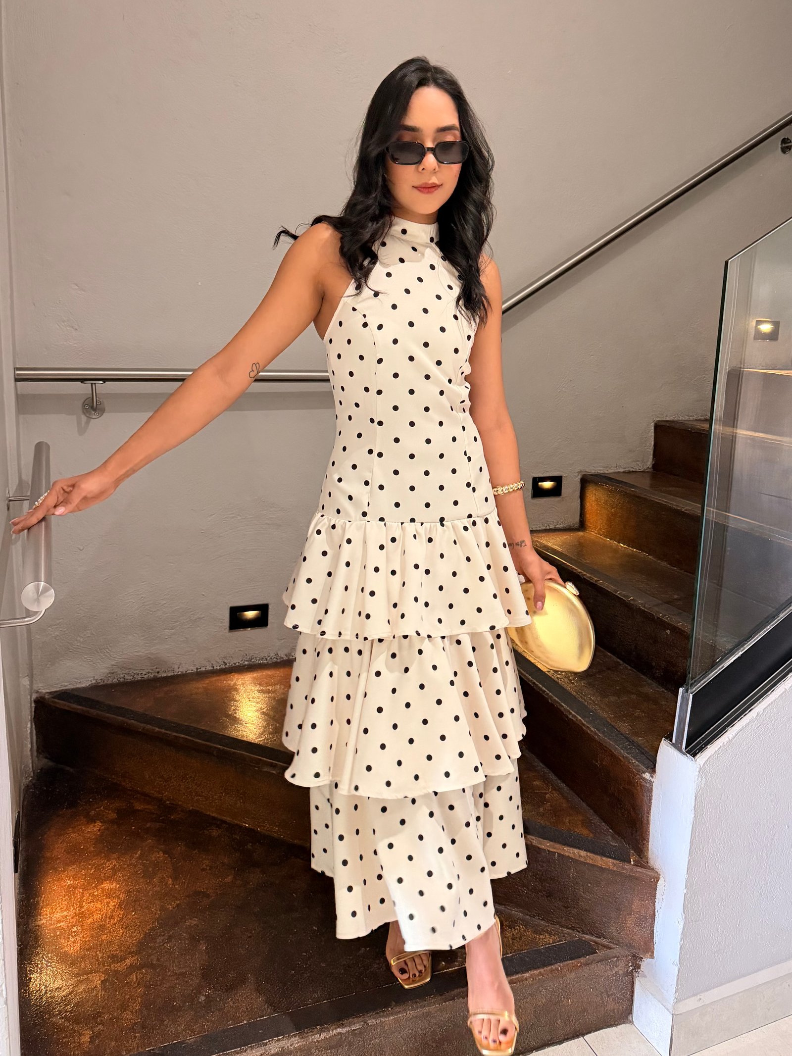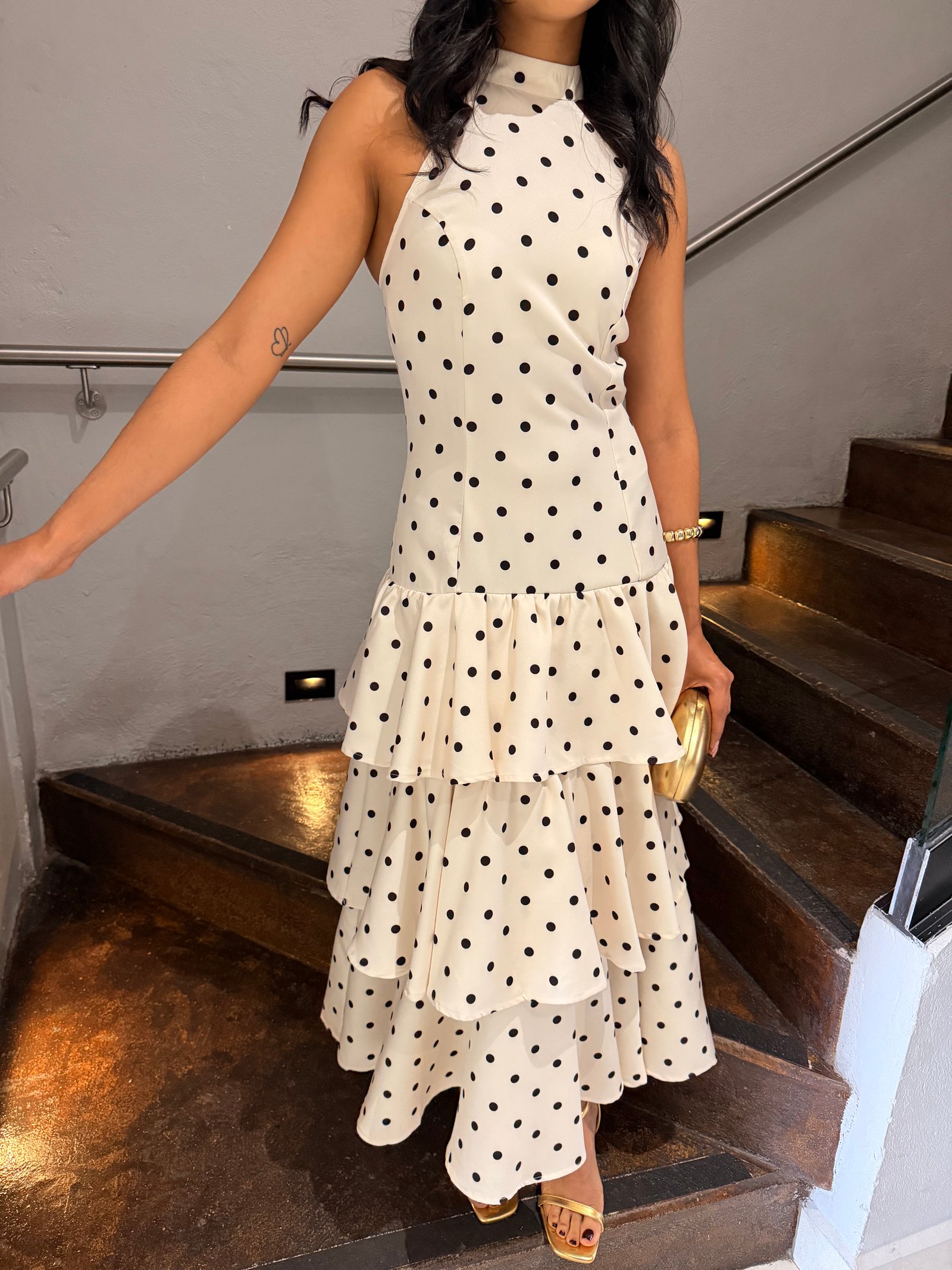 VESTIDO MAXI FLECOS POLKA DOT