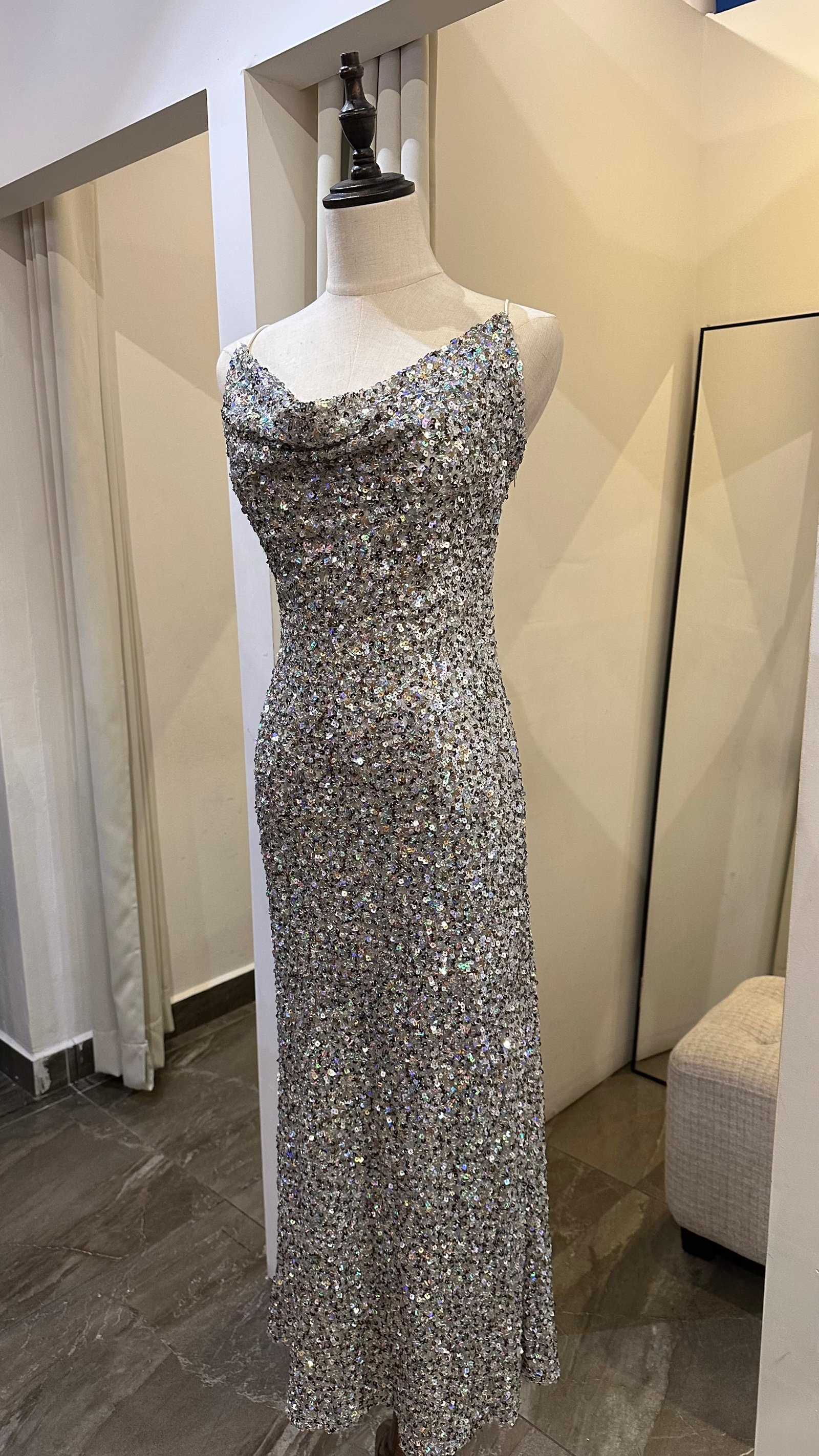 VESTIDO MAXI LENTEJUELAS PLATEADO