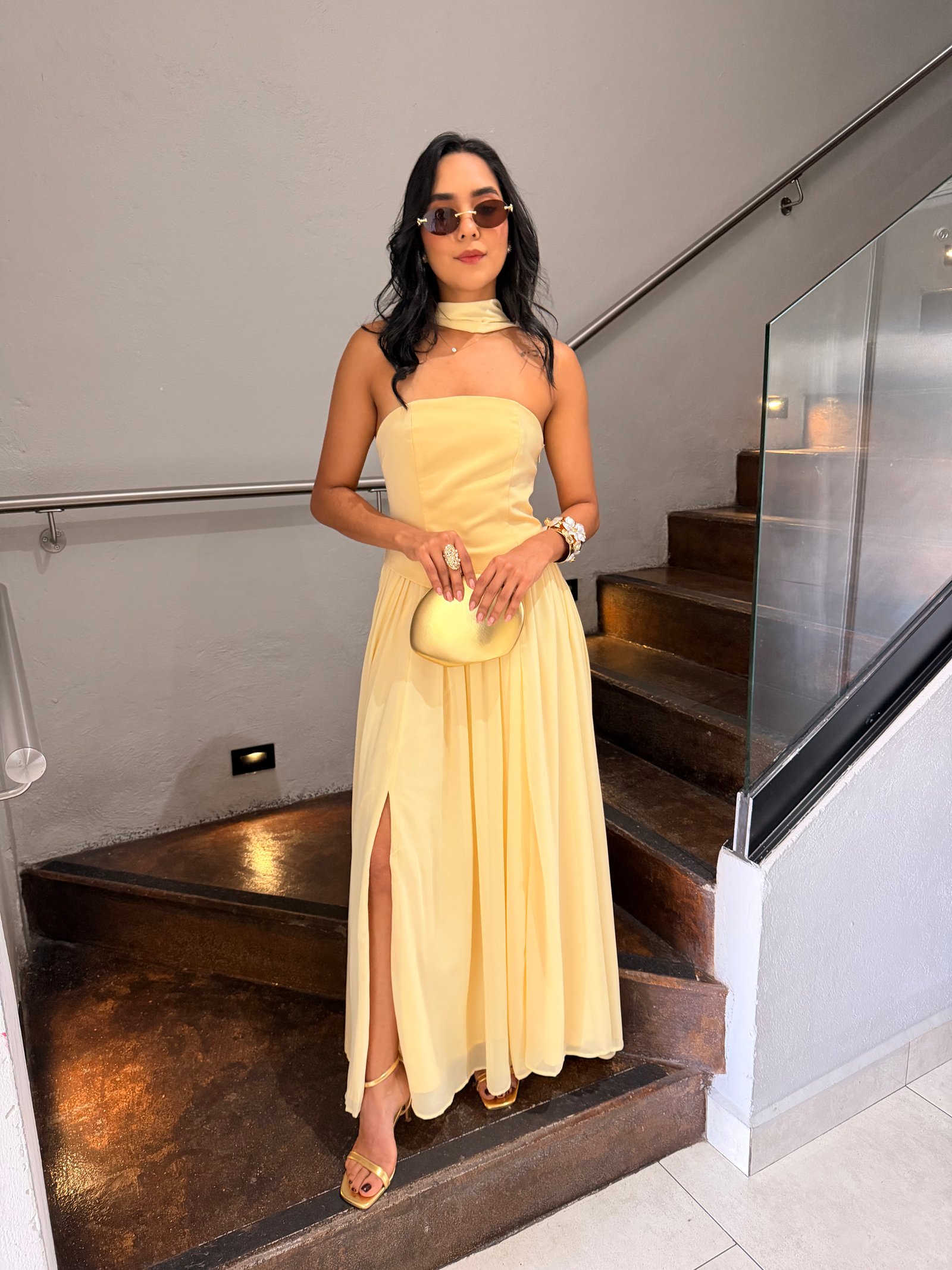 VESTIDO STRAPLESS PLISADA BUTTER YELLOW