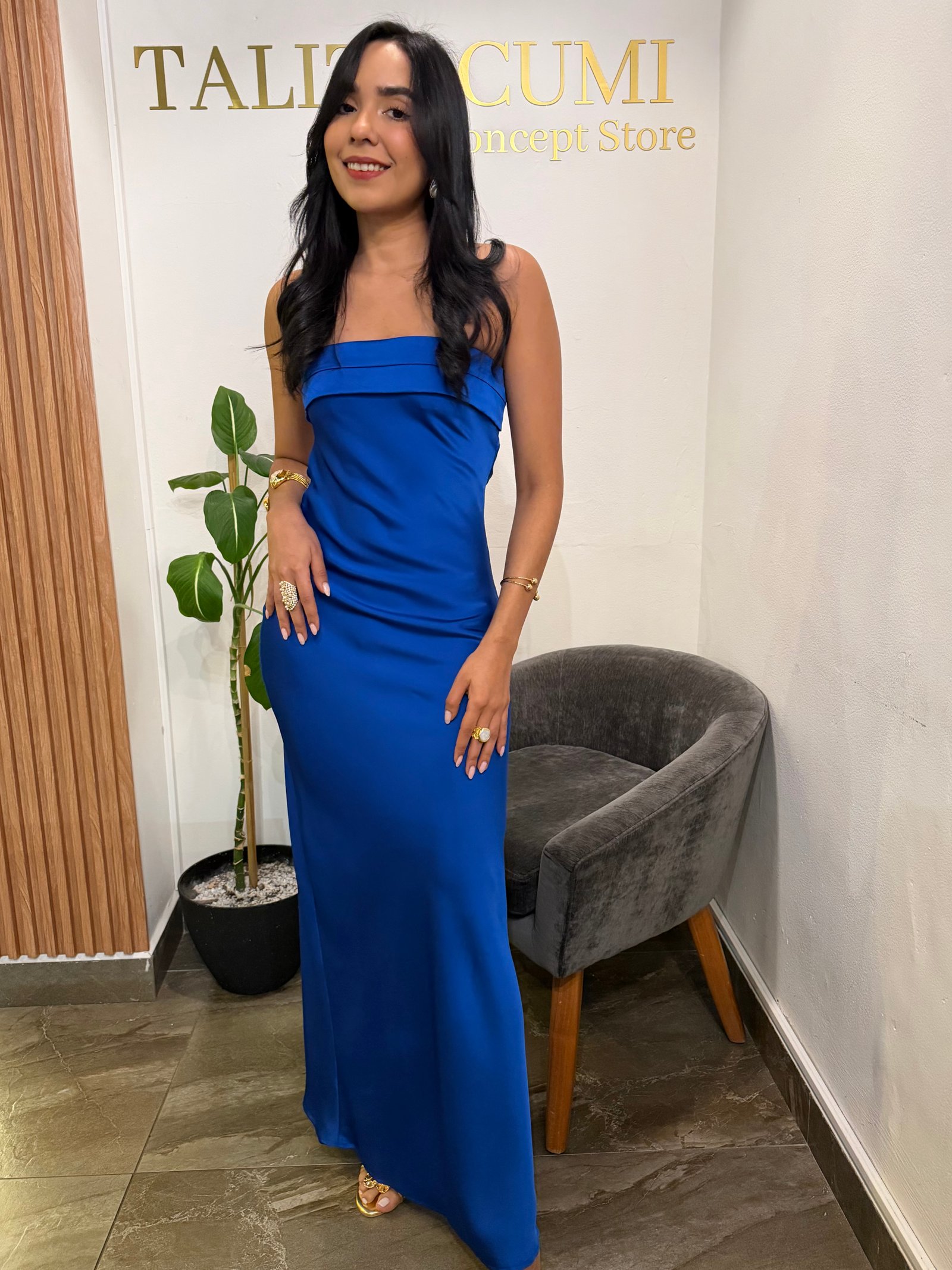 VESTIDO STRAPLESS SATINADO ROYAL BLUE